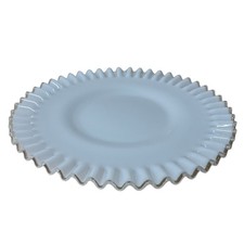 White Milk Glass Ruffled Plate w/ Clear Rim