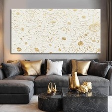 White Minimalist Wall Art, Canvas Textured Painting,Gold Flowers Floral Modern Abstract Art Wall Decor for Bedroom,Living Room And Office Hallway 29"x58". OIL PAINTING: Our flower wall decor was hand-drawn by our professional painter.