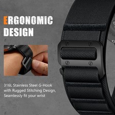 Compatible with various Apple Watch models: 49mm, 46mm, 45mm, 44mm, and 42mm. Stretchy band fits wrist sizes from 5.7" to 8.5" (145mm to 215mm). 26mm ultra-wide band for a rugged outdoor-inspired style.