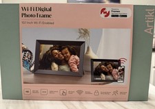 The Wifi Digital Photo Frame by Artikl is a sleek and modern device with a 10.1-inch IPS touch screen display and 32GB internal memory capacity. It is Wi-Fi enabled for easy connectivity and supports media formats like BMP, PNG, and JPEG. The LED display technology ensures vibrant colors and sharp images, while the compatibility with SD and USB flash drives allows for easy external memory expansion. Perfect for displaying your favorite photos in style and convenience.