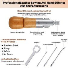 WILLBOND 12pcs Leather Sewing Awl Hand Stitcher Craft Kit Needles & Waxed Thread