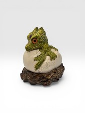 Windstone Editions, North Hollywood, CA. Green with off-white egg on rock. WINWARD Baby Dragon Hatchling.