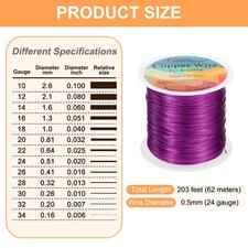 wire 203ft 24 Gauge Copper Craft Wrapping Wire, Red-Purple