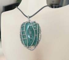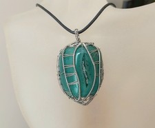 Stainless steel wire wrapped NEW necklace with a big green agate. The pendant is 5,5 3,5 cm, the leather cord is 84 cm.