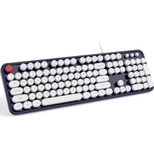Wired Computer Keyboard, Retro Typewriter Keyboard Full Size Round Key, Plug and Play USB Keyboard for PC, Laptop, Desktop, Windows (Dark Blue). Dark Blue Wired Computer Keyboard: Modern latest pop retro typewriter wired keyboards aesthetic design, the best choice for your unique cute desktop.