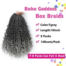 Wodun Goddess Box Braids Crochet Hair 10 Inch, 10 Inch(Pack of 8), Tgrey