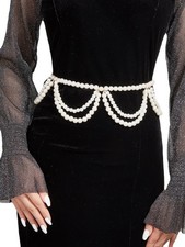 Women Waist chain Double-layer tassel Pearl Metal Show Club Body chain MWW32031