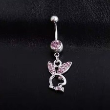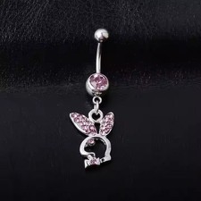 Womens Body Belly Button Pricing Round Simulated Pink Ruby 14K White Gold Plated
