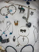 This is a lot of earrings, a watch bracelets, charm, pins, pendants th is is a mixed lot.