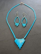 Women's Vintage Santo Domingo Turquoise Sterling Silver Necklace Earrings Set