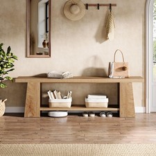 4、Spacious & Multi-Purpose suitable: This versatile long bench features a double-layer shelf for organized storage and provides extra seating—perfect as a foyer bench, end-of-bed bench, or living room accent.