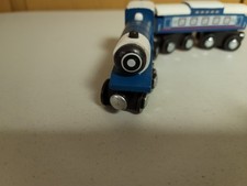 Wooden Railway Steam Engine & Passenger Coach Train Battat VG Condition