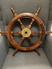 Wooden Ship’s Helm Brass Center Nautical Decor