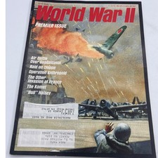 World War II Premier Issue magazine from May 1986. It also features profiles on "Bull" Halsey and the invasion of France. The cover art depicts a dramatic aerial combat scene involving a Japanese Zero.