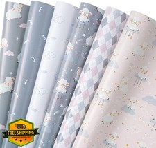 BABY DESIGN: The wrapping paper sheets are patterned with adorable pink and grey sheep, plaid, cute cloud design, unique and exquisite design make your gift attractive. PREMIUM QUALITY: Created with high-quality paper materials, thick and not easily tear or rip.