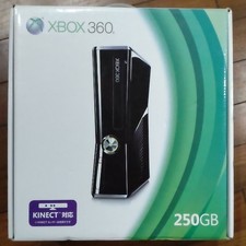 Console (250GB). The Xbox 360 S (Slim model) features a quieter design, built-in Wi-Fi, and a compact body compared to earlier Xbox 360 models. The bundle includes the original box and printed materials, which adds collector value.