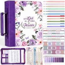 XKDOUS 24 Pcs Bible Cover Case for Women, Bible Journaling Kit, Portable Book...