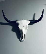 XL Yak skull Measures 35” from tip to tip Skull is 20” long (from back of the skull to nose tip and 10” wide from eye socket to eye socket. Cleaned via maceration and fully degreased and then whitened in 34% peroxide.