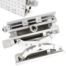 This is a new Laser marking machine working fine-tuning platform. Specification: Colour: Slivery Material: Aluminum alloy Shape size: 26*15*13cm Workbench size: 210*150 mm Work stroke:X=80mm Y=50mm Z=120mm Installation hole spacing: 100X100mm (M4-M6) Minimum height:145mm Maximum height:275mm Weight: 7KG Applicable to: IC, U disk, MP3, memory card positioning laser marking; all kinds of micro translation, experimental platform. Features: 1.Strong working stability and good wear resistance 2. The load is lighter 3.corrosion-resistant and rust-free. Package Included: 1×XYZ Workbench.