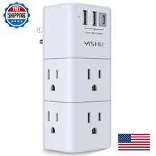 Manufacturer YISHU. 【Portable outlet plug adapter】: 6 AC Outlet Splitter (3 side) with built-in surge protector (900 Joules) and 3USB charging ports (total output DC 5V/3.4A), 90 degree rotating AC plug.