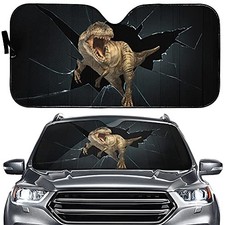 YOSA Escaped Dinosaur Car Windshield Sun Shade Angry Dinosaur Auto Front  additional preview