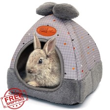 YUEPET Grey Grid Bunny Guinea Pig Hamster Hideout Bed Warm Cave
