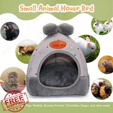 🐹【Cute Little Hideaway】 --- Exterior : 11.8"height, 11.8"length, 11.8"width; Entrance: 6.7" width, 5.9" height. A removable soft cushion inside, this rabbit hut can be used as a cozy covered hideout cave or folded into a lovely pet sofa.