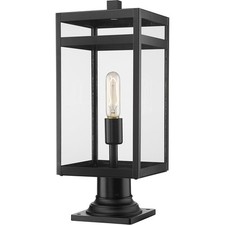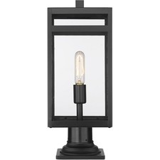 Include an industrial light source on your patio or porch with this one-light outdoor pier mounted fixture made from steel. It features a versatile black finish and a crisp, clear glass shade.