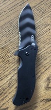 Style Pocketknife. Blade Steel CPM S30V. Used in excellent condition. POCKET CLIP IS MISSING. Factory edge still sharp as can be and in excellent condition. Serrated edge. Handle Material G10. Blade Finish/Coating Tungsten DLC tiger stripe coating.