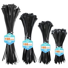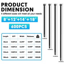 Zip Ties Assorted Sizes, 600 Pack (8+12+14+18Inch) Black Cable Ties, Self-Loc...