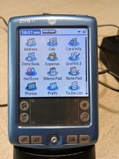 Zire 71 by palm. You receive item on pictures only. This is good condition, it have lot of features for too many users. Build in system.