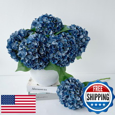 ZYTUYO 5 Pcs Dark Blue Silk Hydrangeas Artificial Flower Boho Dried Touch 20'' F